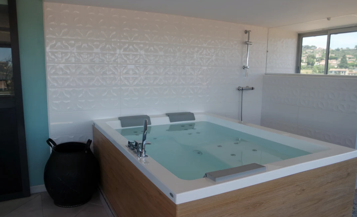 Profitez d'un instant de détente absolue dans notre double baignoire Jacuzzi® dans un cadre offrant la vue unique sur Manosque.